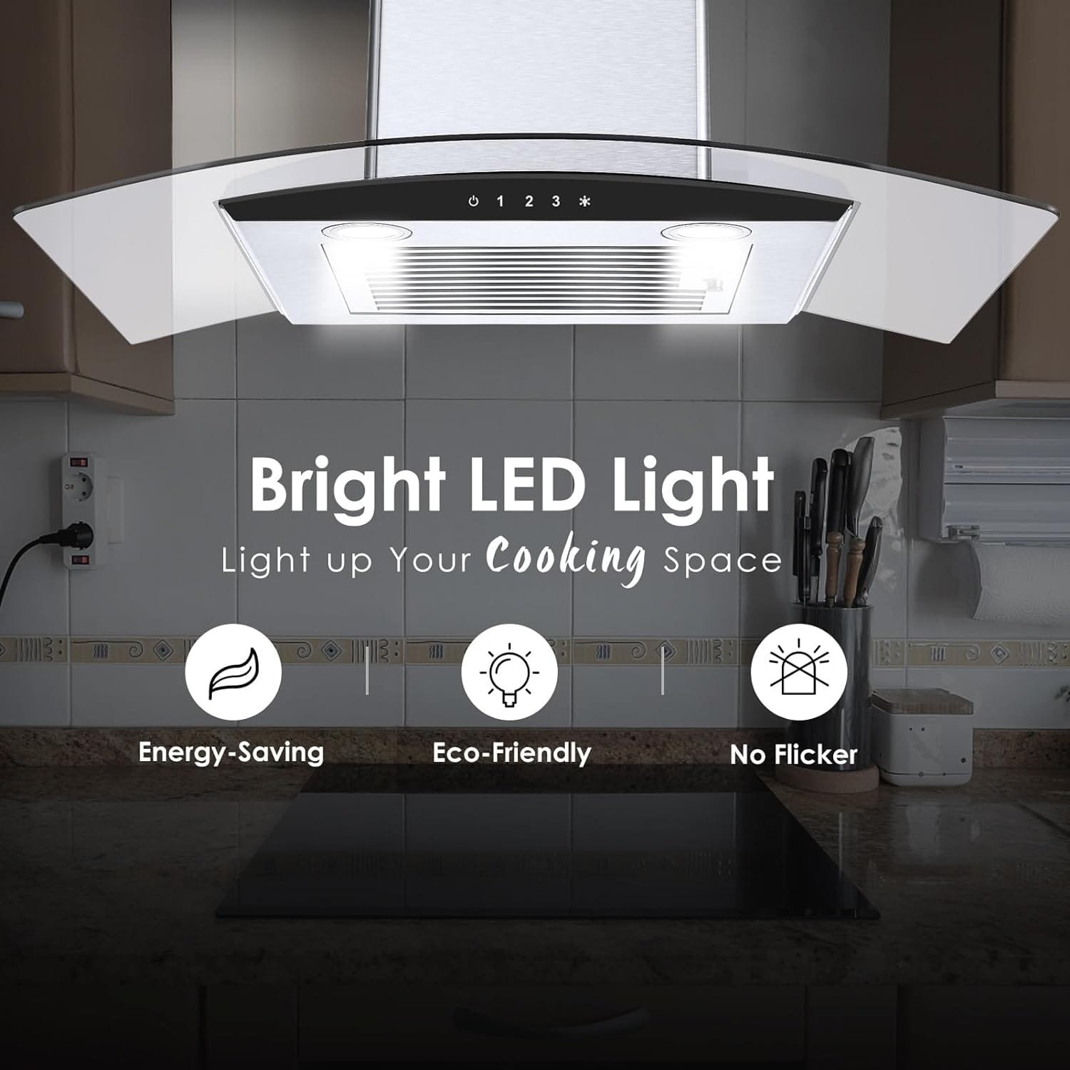Crafted from premium brushed stainless steel, the range hood not only functions effectively but also adds a touch of class to your kitchen. Its 18-Gauge thickness speaks to its quality and longevity.