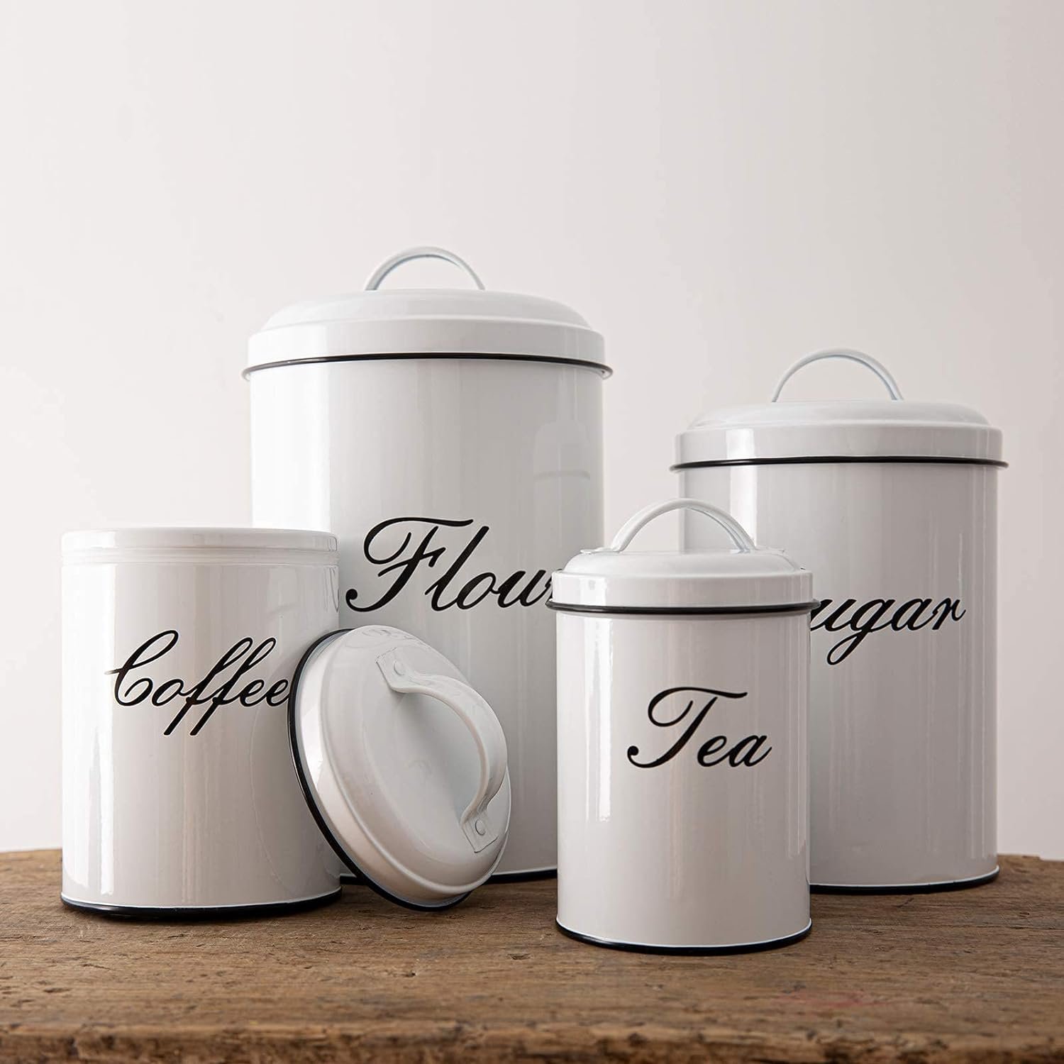 Perfect for keeping your coffee, sugar, and tea within easy reach and stored in style.