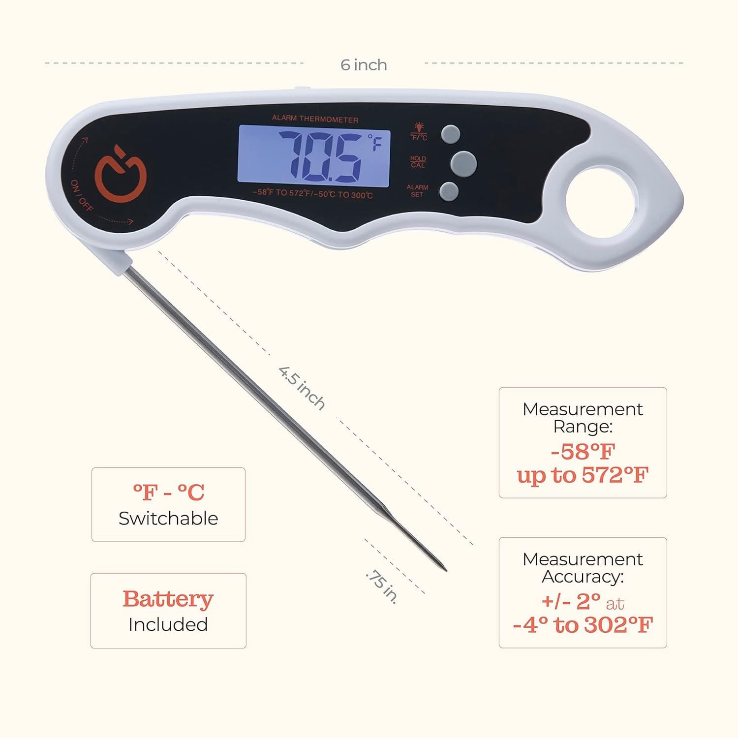 Quickly find out the internal temperature of your food with the thermometer’s instant-read capability, delivering results in 2-3 seconds.